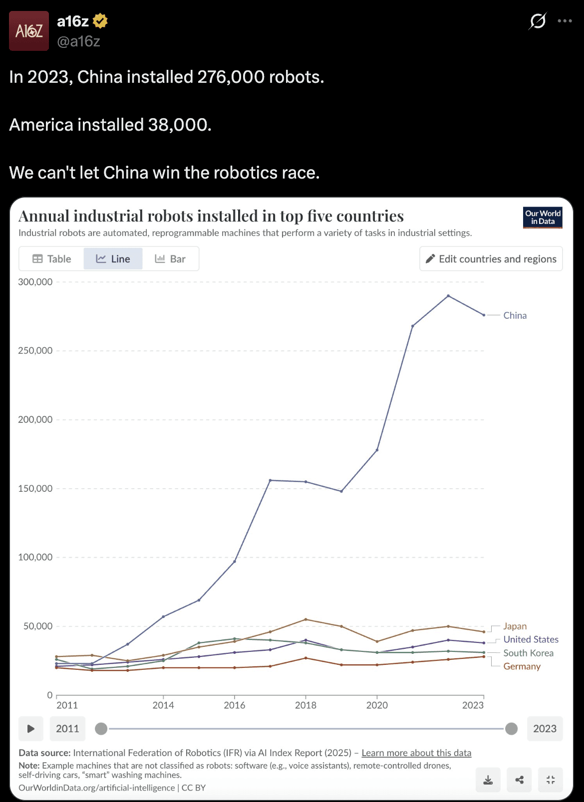 The robotics sector is also becoming a strategic priority at the national level. Governments increasingly view humanoid robotics as core infrastructure tied to productivity, resilience, and long term economic power. Robotics is no longer just a commercial race, but a geopolitical one.